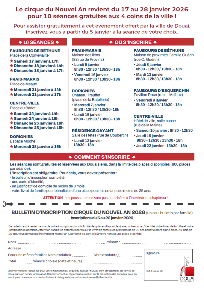 Les séances de cirque sont gratuites et réservées aux Douaisiens, dans la limite des places disponibles.