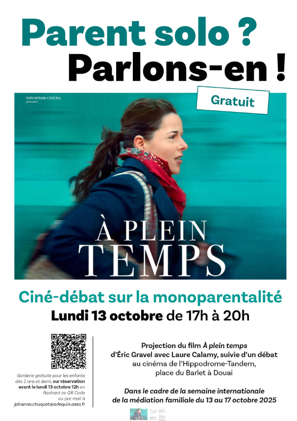 "Parent solo, cette rencontre est pour vous !" coanimée par les équipes de la médiation familiale et d’Arlequin.
