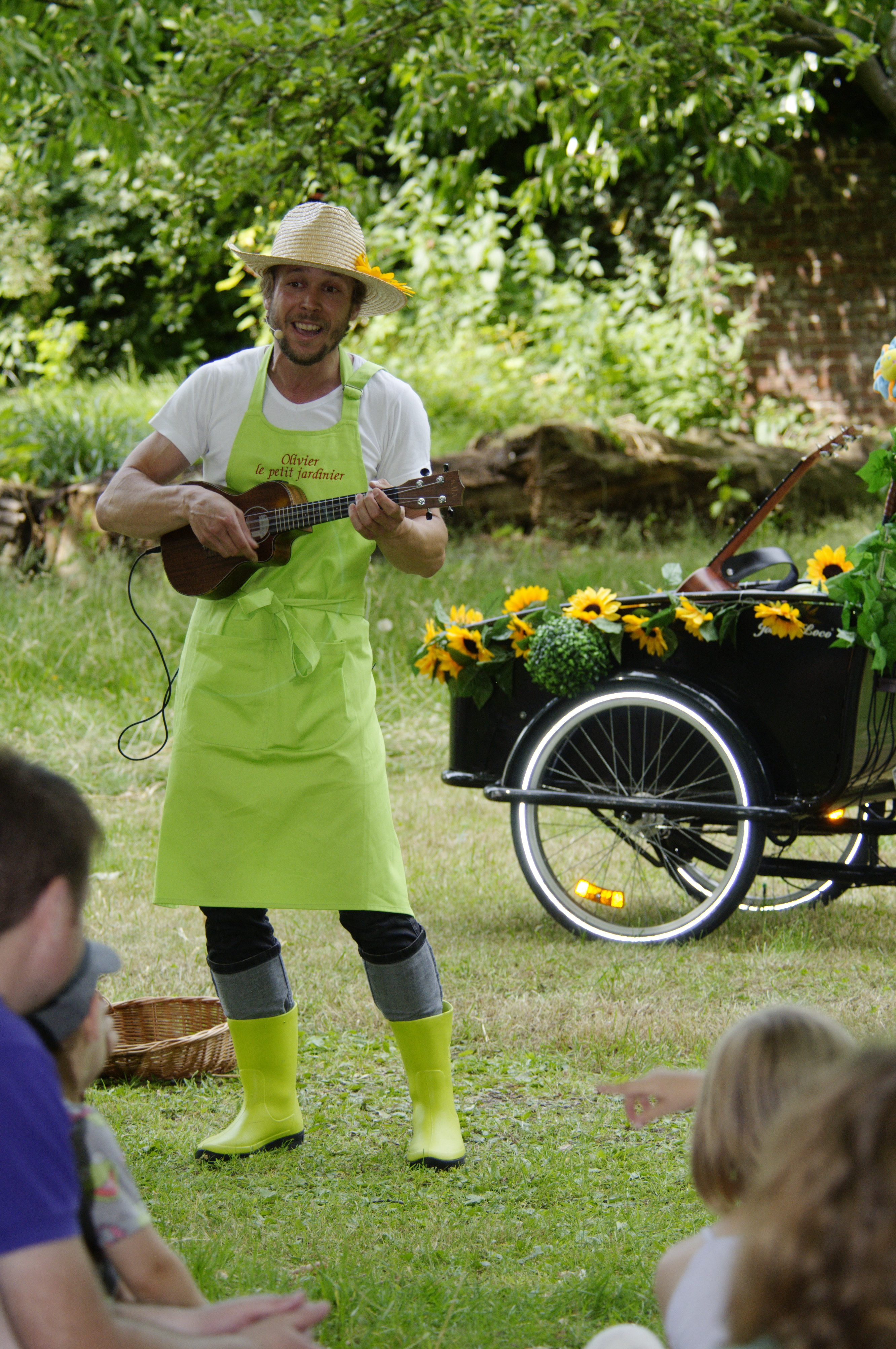 - 16h : Spectacle musical jeune public "Olivier, le petit Jardinier" (à partir de 2 ans – 30 min) Olivier revient de son jardin-potager en vélo triporteur. Il a rapporté quelques légumes de saison. C’est en chansons qu’il fait découvrir aux enfants légumes, jardin et potager.